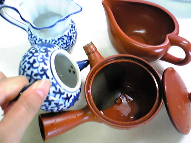右がステンレスの網がついた急須。